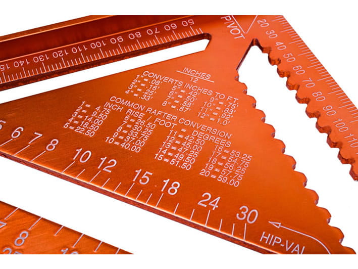 - Posiada oznaczenia pozwalające na docinanie m.in.. krokwi w więźbach dachowych.