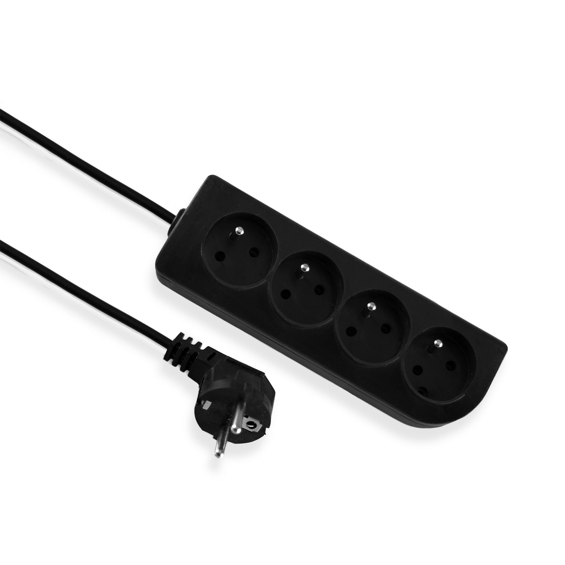 Przedłużacz 4-gniazdowy z uziemieniem 2m CZARNY, Listwa zasilająca