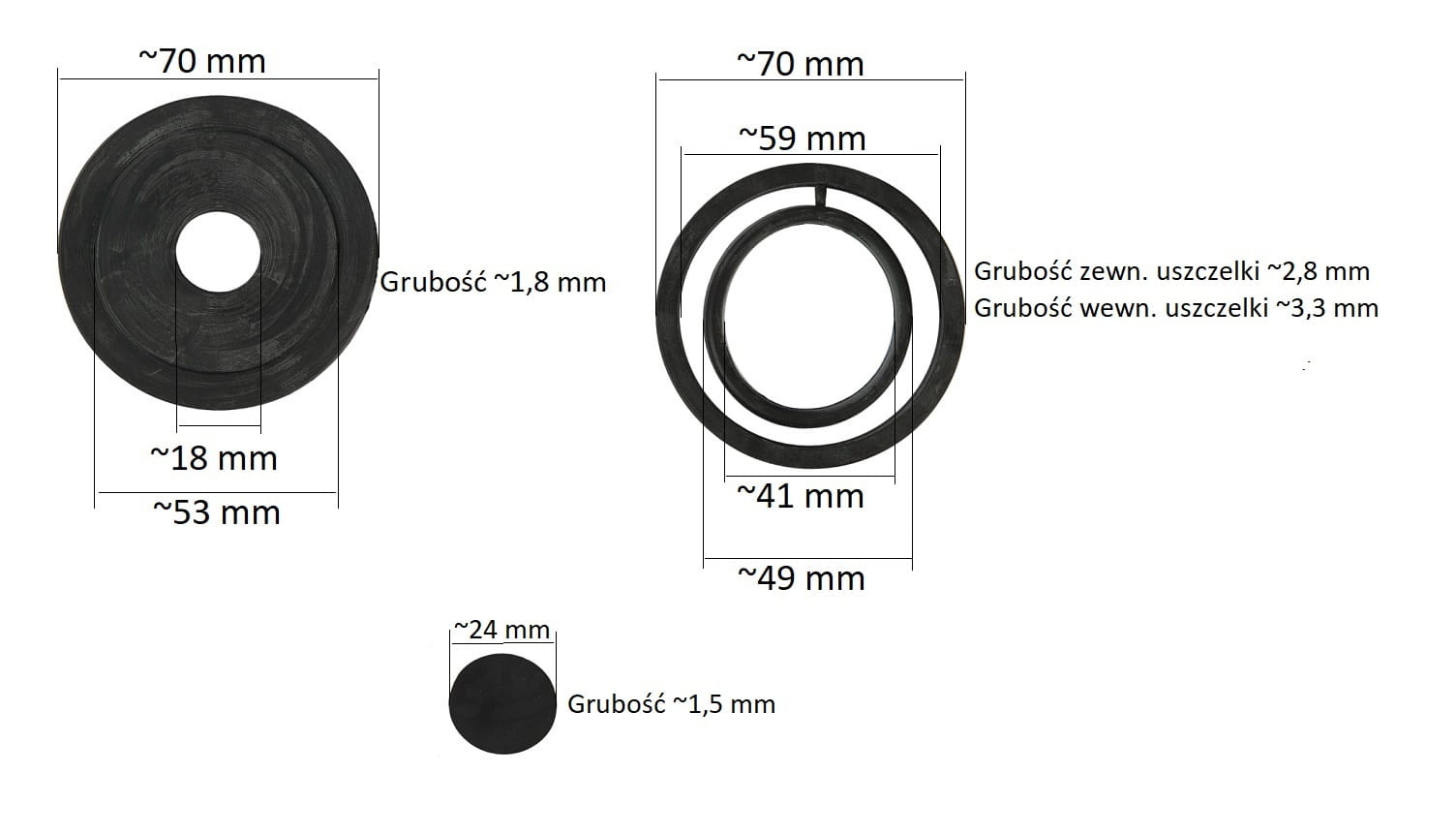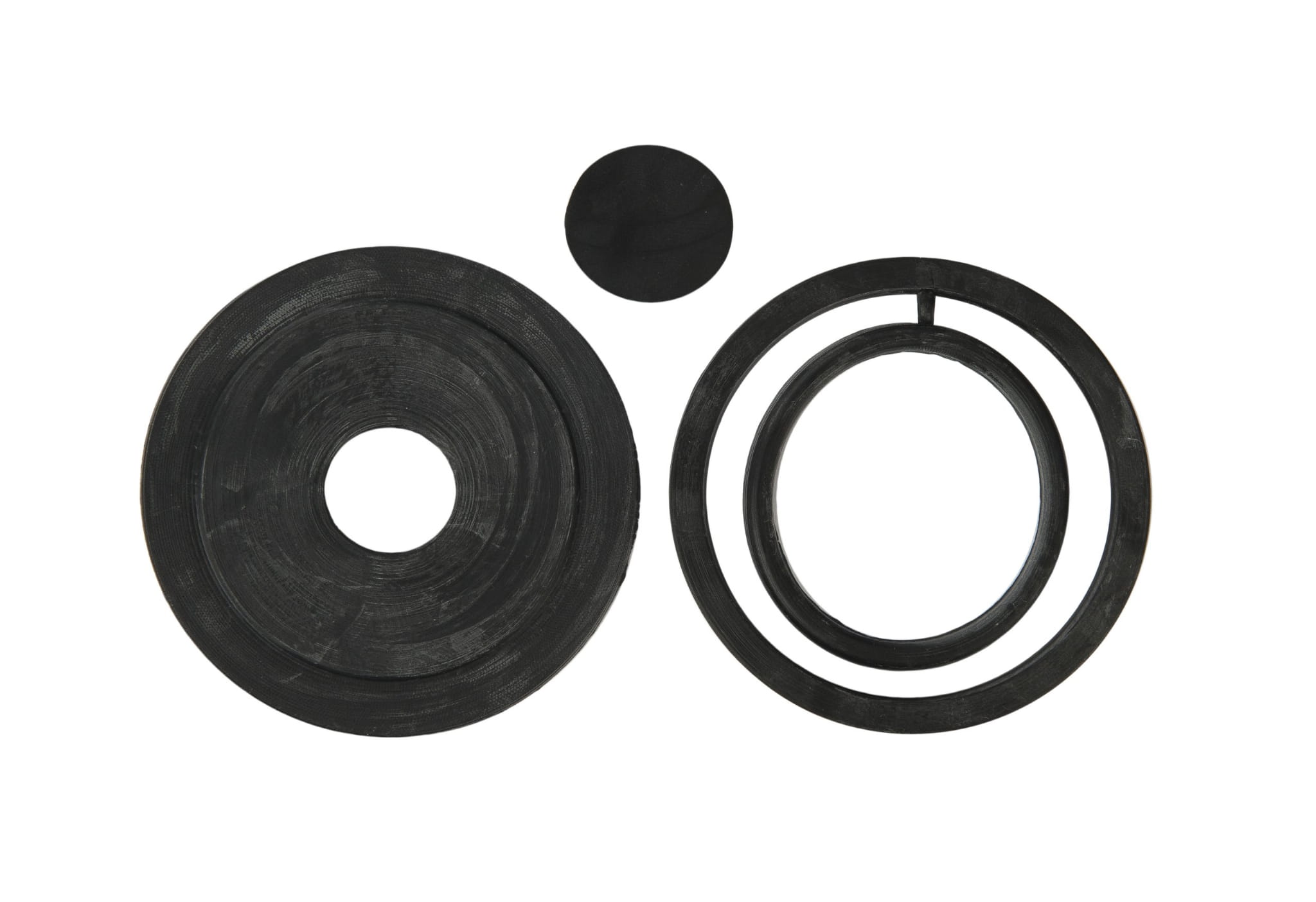 Zestaw naprawczy dolnopłuka, to zestaw, który jest przeznaczony do wymiany uszczelek w dolnopłukach toaletowych. Dolnopłuk to rodzaj spłuczki toaletowej, w której woda spływa bezpośrednio do misy, co jest charakterystyczne dla wielu modeli toalet. Komplet uszczelek dolnopłuka jest używany w celu utrzymania uszczelnienia i zapewnienia prawidłowego funkcjonowania mechanizmu spłukiwania. Produkt jest wykonany z gumy, co zapewnia mu dużą wytrzymałość oraz elastyczność